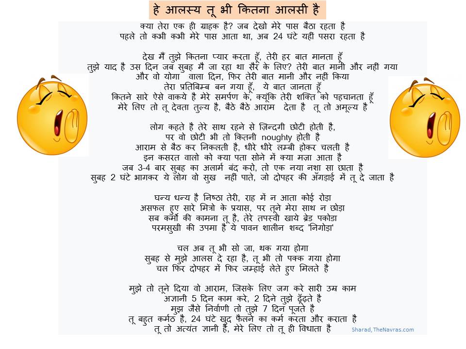 #Hindi #Poem #SharadPrinja #TheNavras #Navras #Hilarious #Wisdom #Gyan #Funny #Kavita #Poetry #Lethargy #Lethargic #happy #Sleep #Work #mondayblues